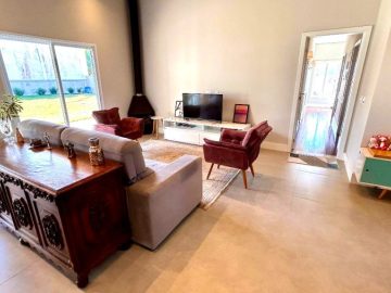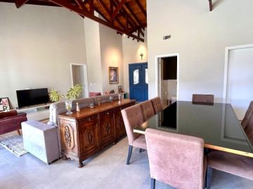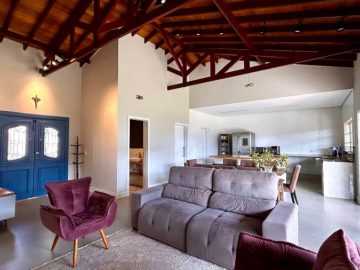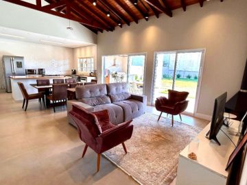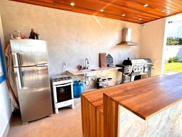 As 2 salas convidam ao relaxamento e à convivência, enquanto a cozinha é um espaço funcional, perfeito para despertar o chef que existe em você. E para os amantes de churrasco, uma churrasqueira charmosa espera por momentos de celebração. Esgoto com sistema de biodigestor, energia fotovoltaica já homologada com 6 placas.